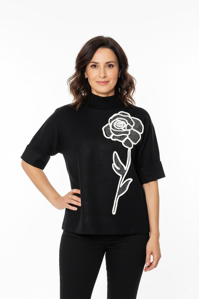 Μαύρη μπλούζα με λευκό τριαντάφυλλο