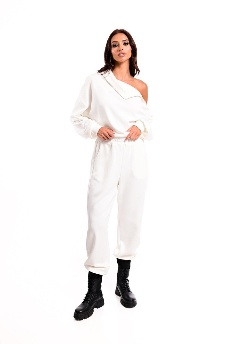 Εκρού σετ φόρμας με φερμουάρ και ψηλό λαιμό