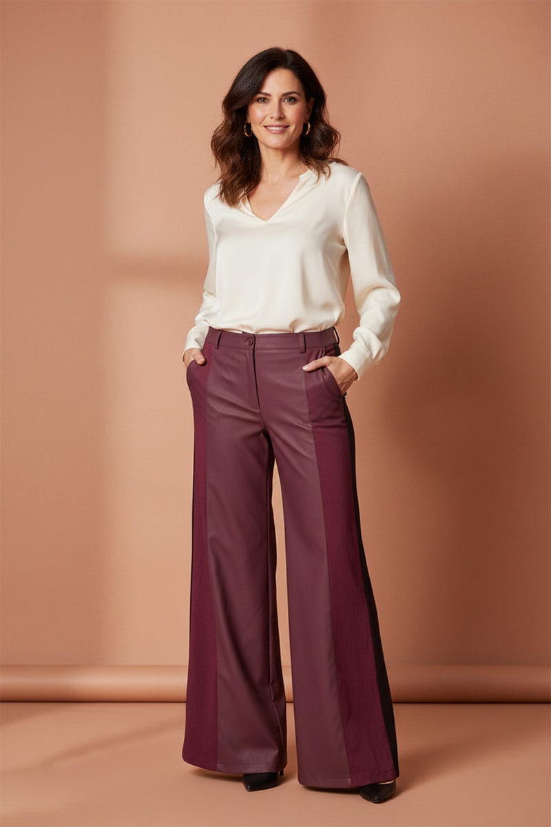 Μπορντό παντελόνι με δερματίνη και λευκή ρίγα