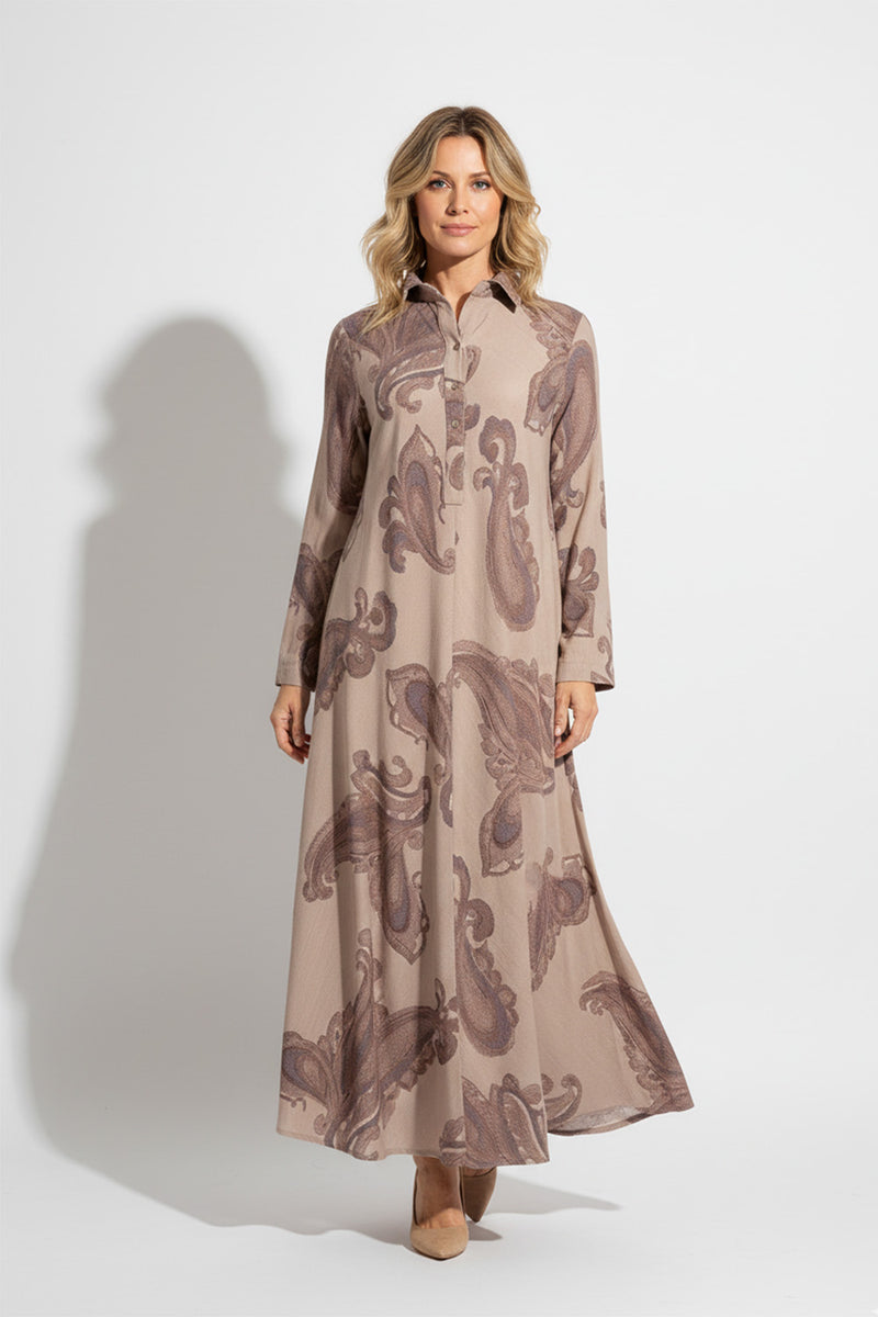 Φόρεμα εμπριμέ ζακάρ πλισέ