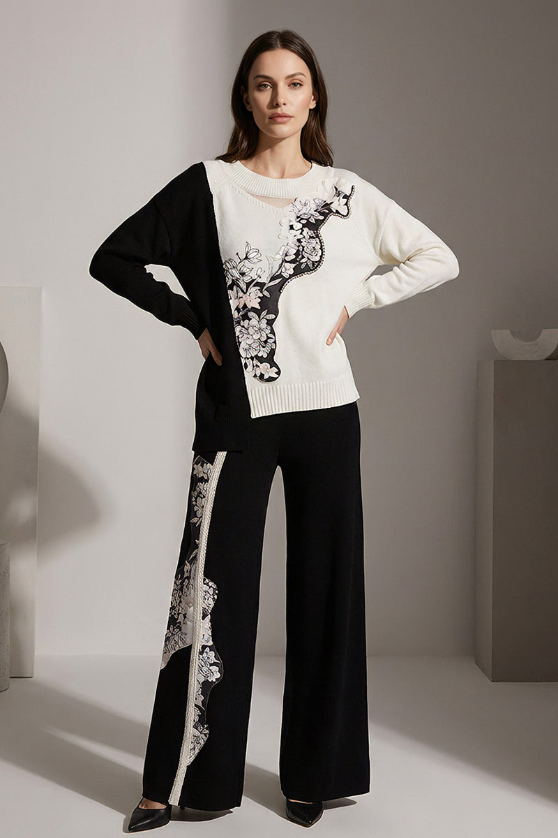 Γκρι πλεκτό ζιβάγκο με φερμουάρ, μαύρες ρίγες και floral διακοσμήσεις σε μακριά γραμμή