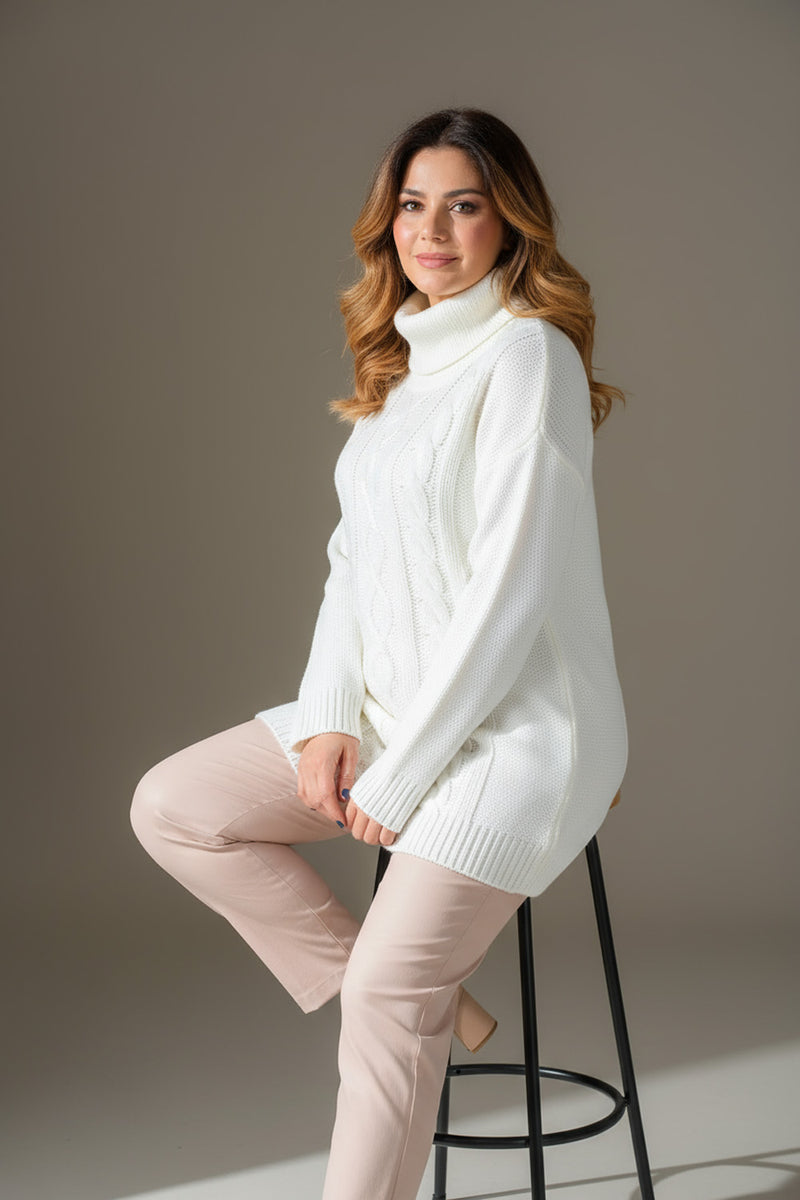 Λευκό πλεκτό oversize με καφέ λεπτομέρειες