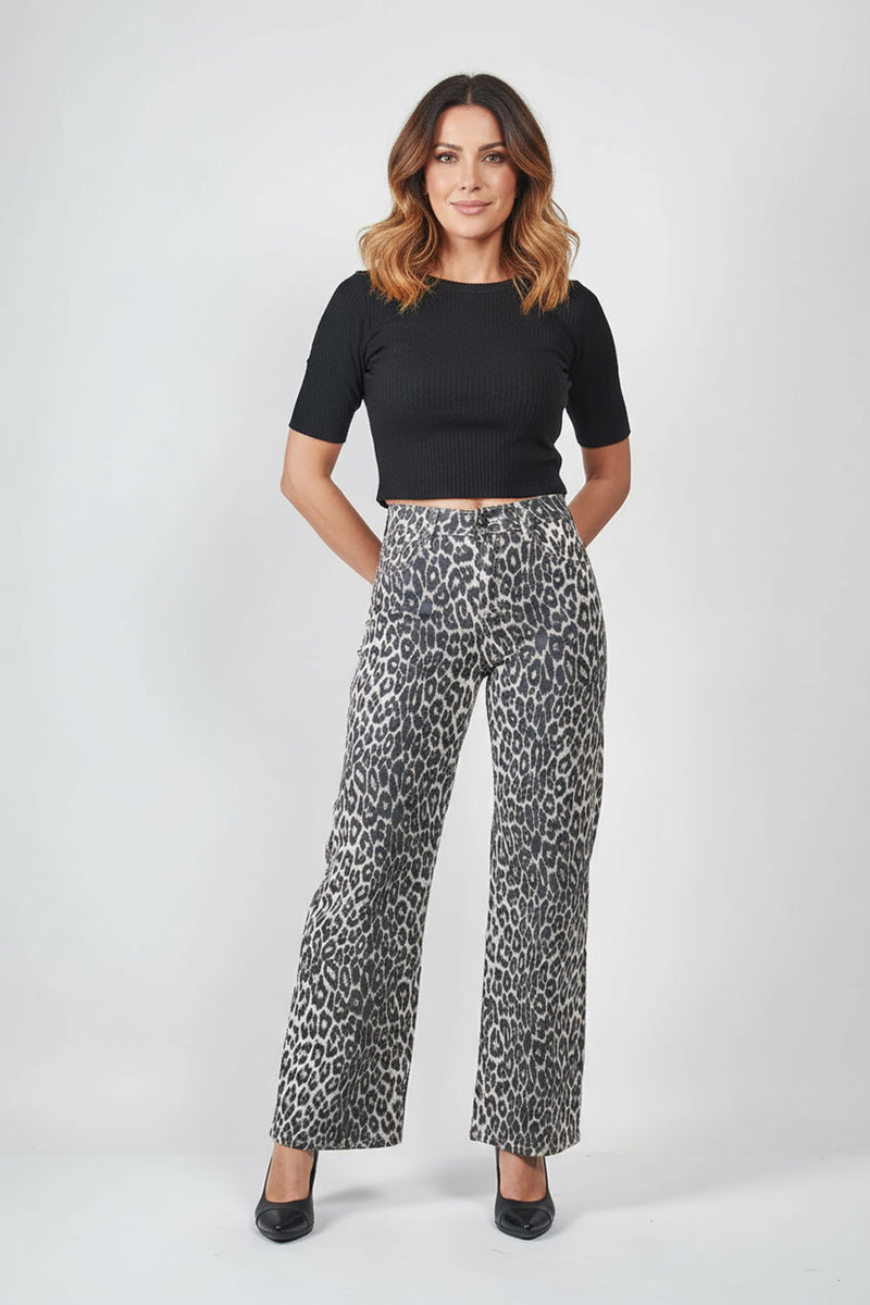 Leopard Παντελόνι με Φαρδιά Γραμμή